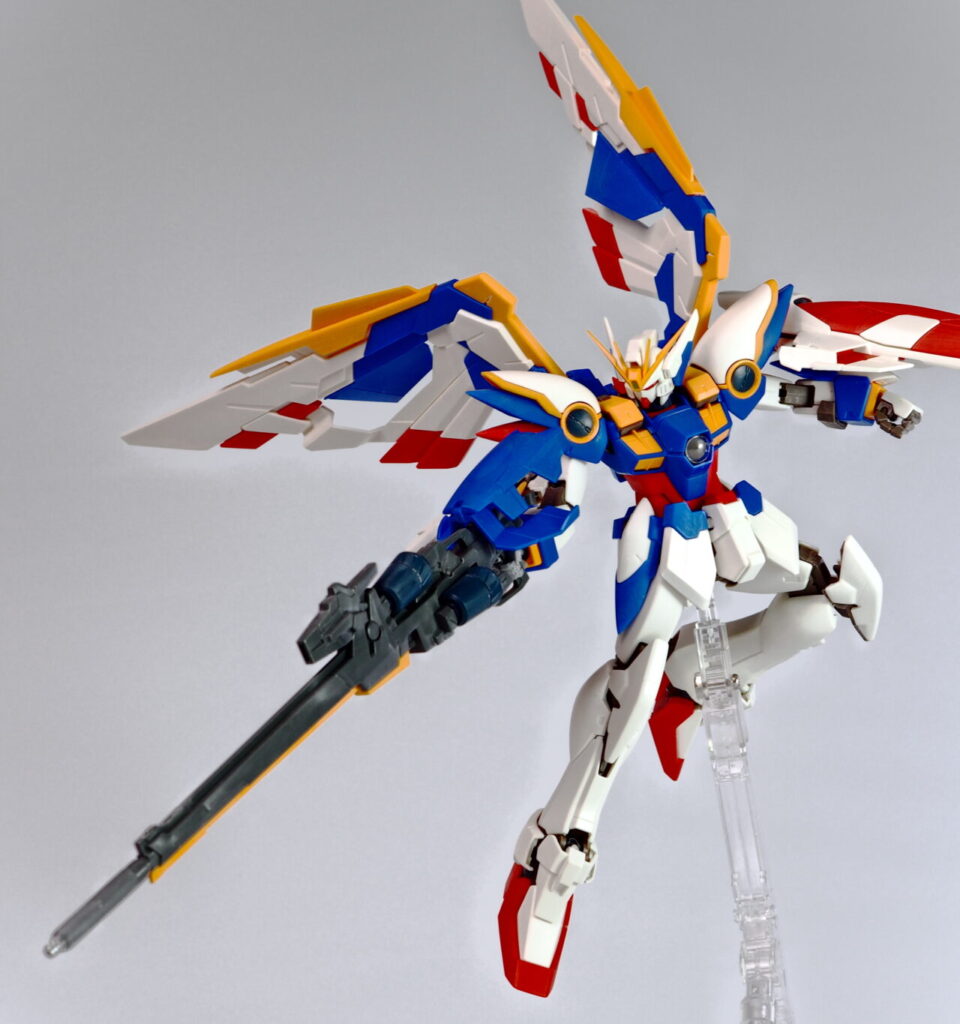 しかし、ウイングガンダムを本当に輝かせるステージは、やはり「空」にあります。次は、この重厚なポーズを維持したまま浮かせるための工作に移ります。