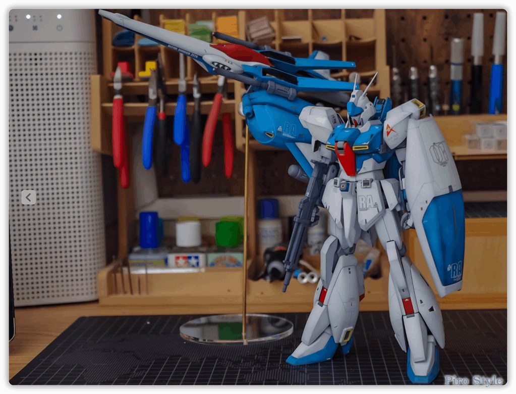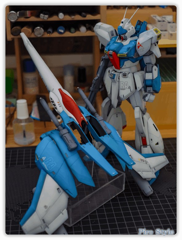 というわけで、MG リ・ガズィ完成編でした。 苦労した甲斐あって展示会でも沢山の方にご覧いただきました。現在はみんなの工作ベースさんで展示させて頂いています。