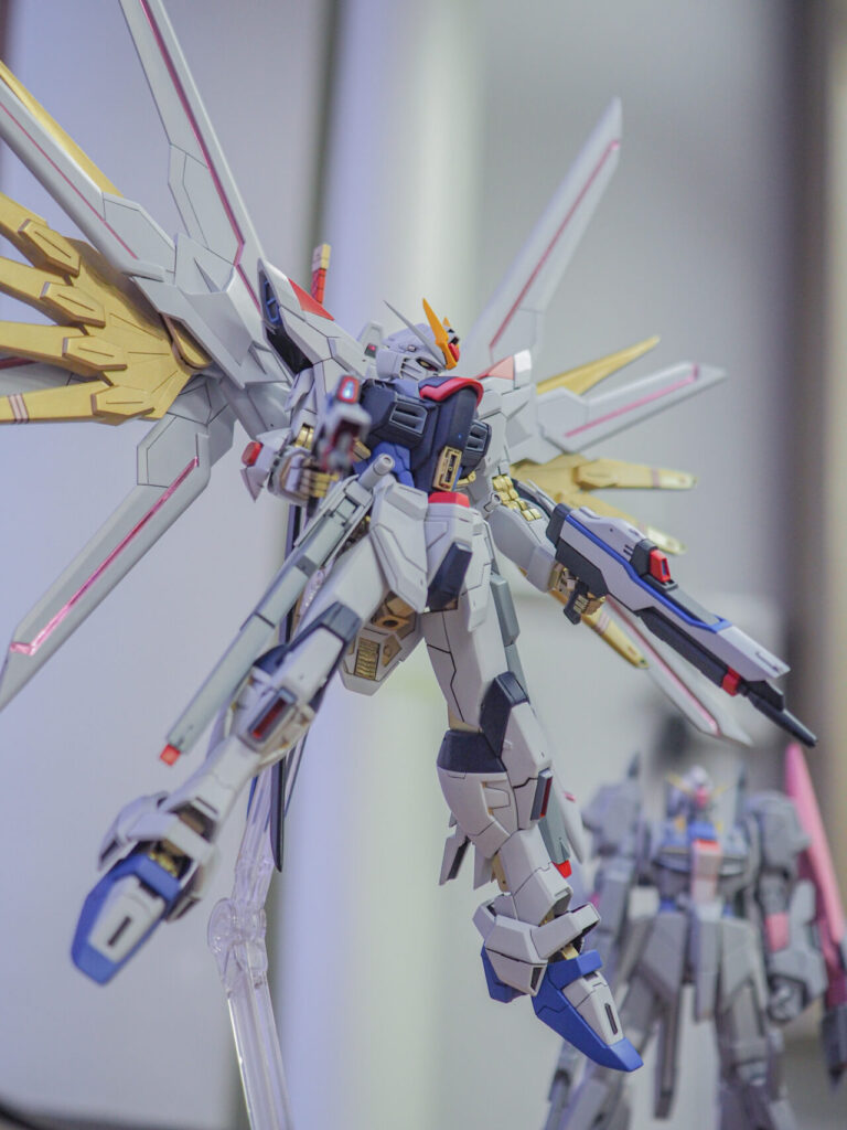 まずはこちら。TAKUMAさん(@evlz2619)が持ち込んでくれた、HGUC マイティーストライクフリーダムガンダムです。